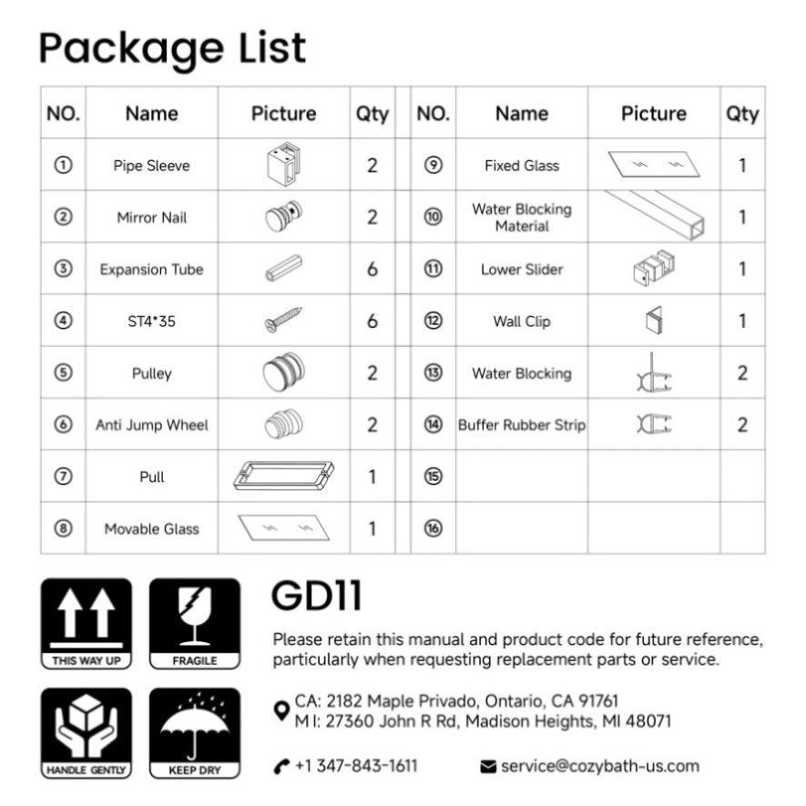 Tempered Glass: Crafted with 3/8" (10mm) thick SGCC certified clear tempered glass, our glass shower door is tough and durable with resistance to impact and scratch, reducing the risk of injury from sudden breakage.