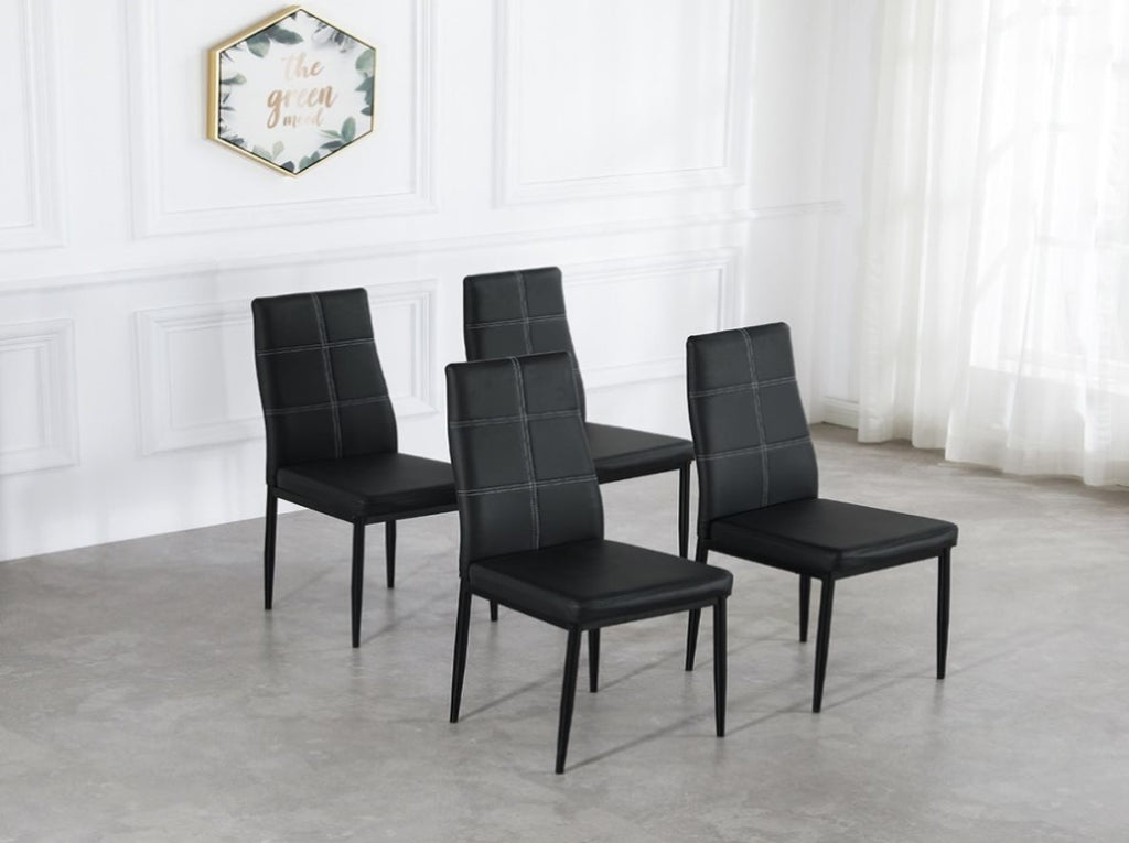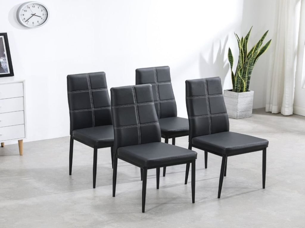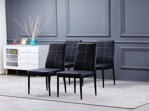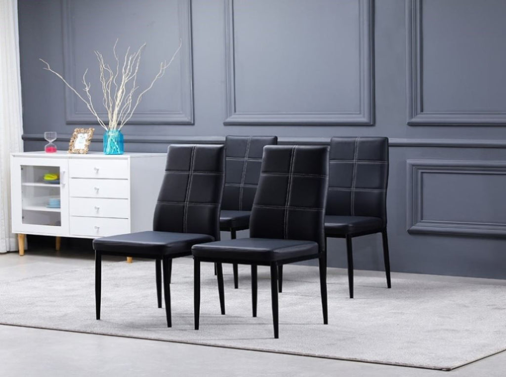 The package includes 4 dining chairs. These soft leather upholstery chairs help you create an ideal dining environment, which are elegant and durable. These chairs are designed for easy maintenance and daily use. The PU surface ensures the durability of products, prevents water overflow and the waterproof performance of stains. Cushioned seat with high-density sponges and ergonomic high-back design make you feel comfortable.
