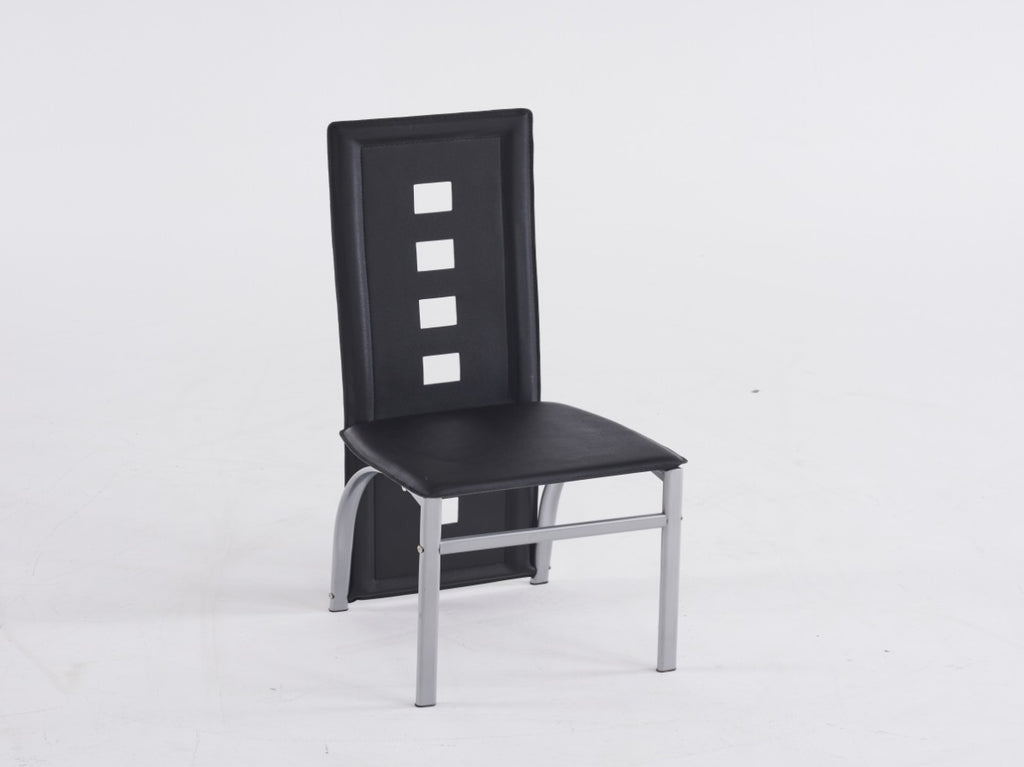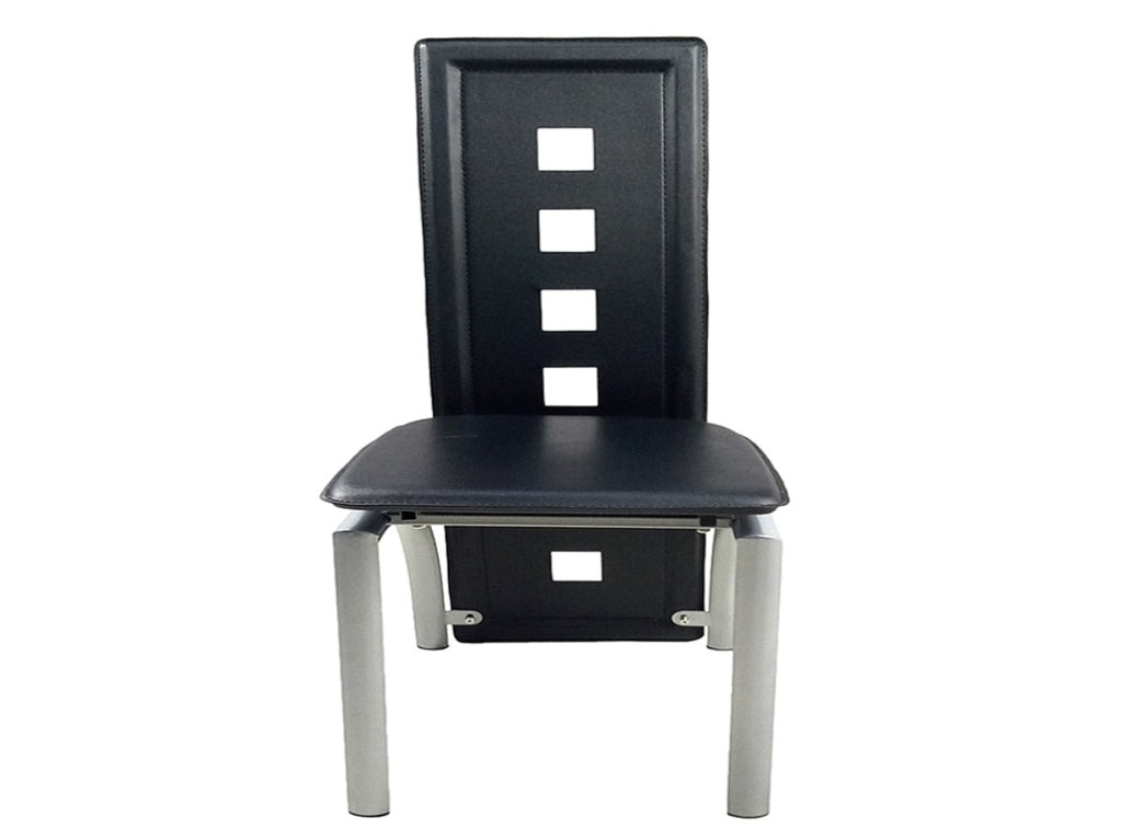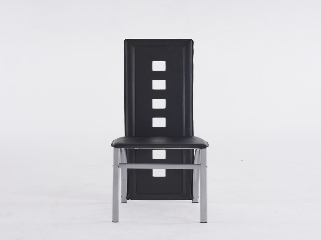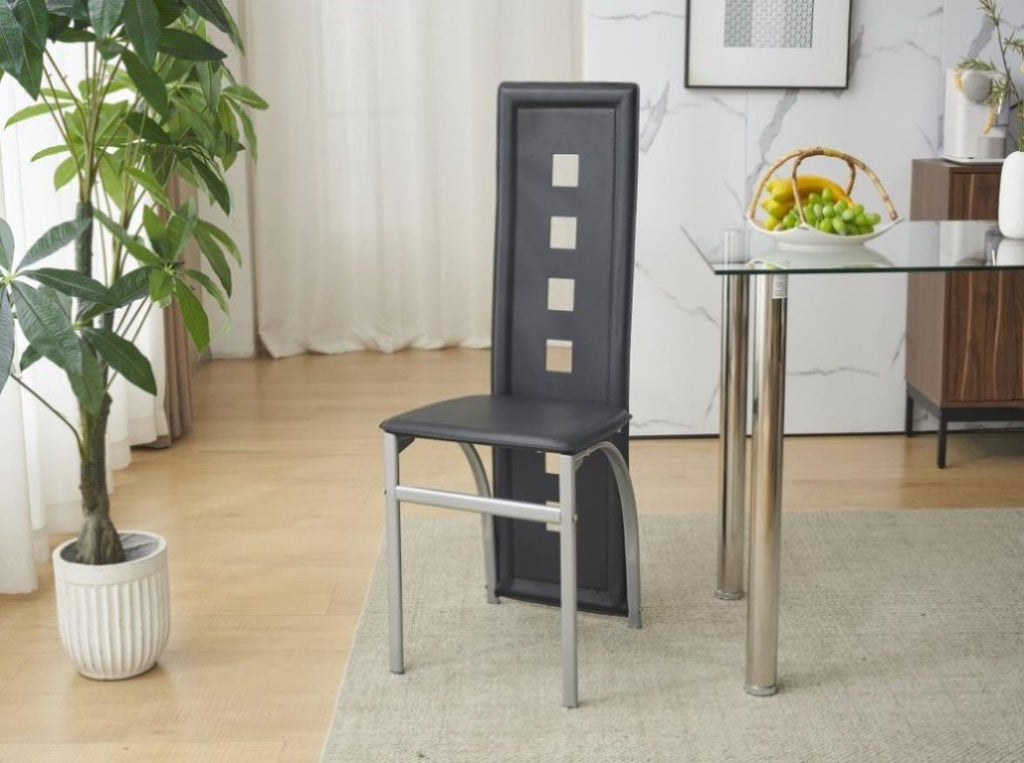 4pcs long backrest square hollow decoration PU leather dining chair round tube black cushion 98227246