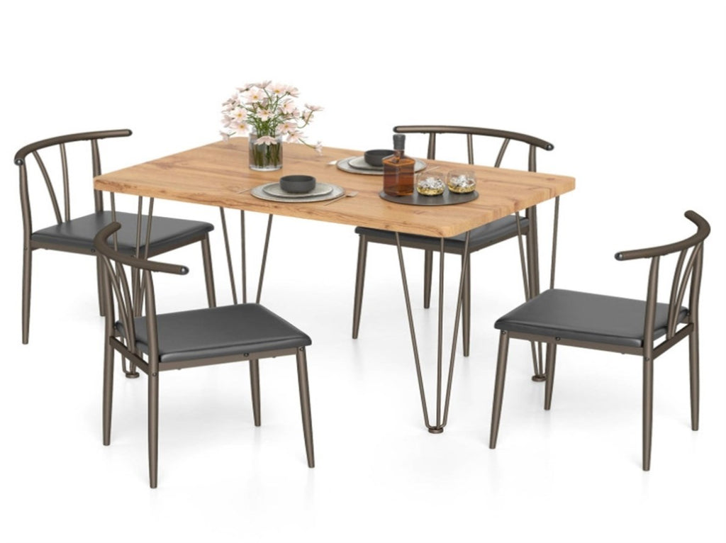 5-Piece Industrial Dining Table Set for 4, Rustic Oak Kitchen Table with 4 PU Leather Chairs 21772990