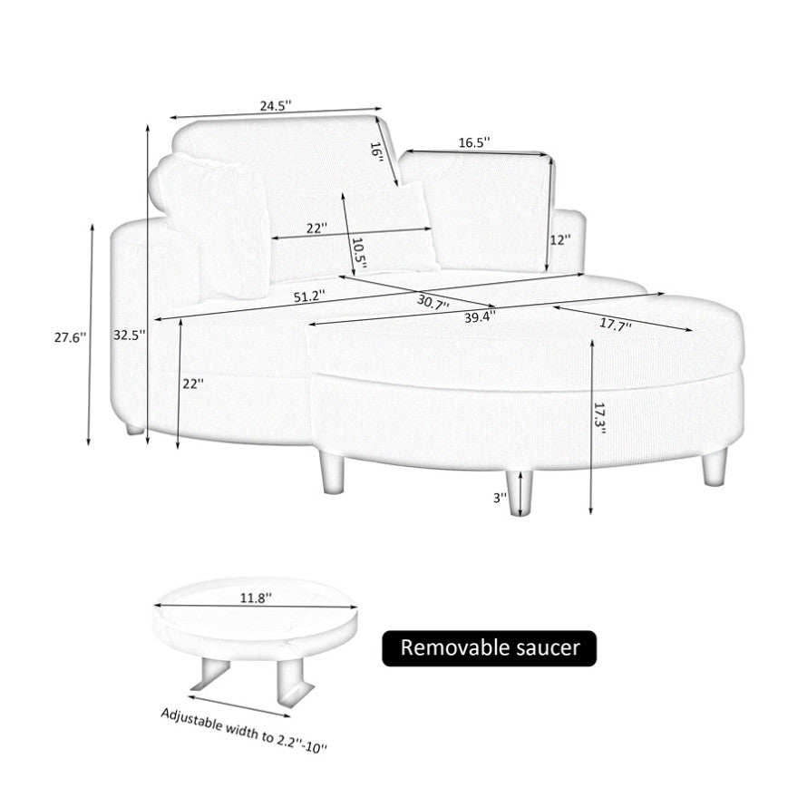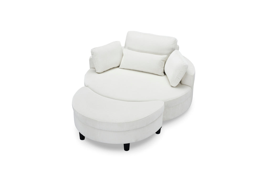 Round sofa comfortable corduroy fabric sitting comfortable with two throw pillows, a waist pillow whether you lie or sit can be very good to protect your waist