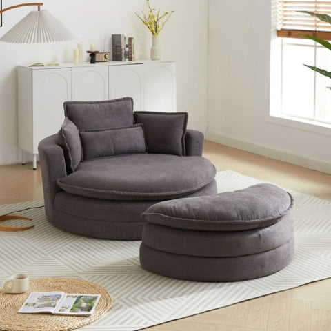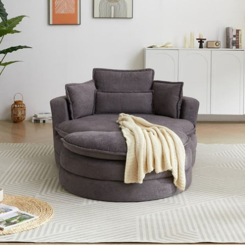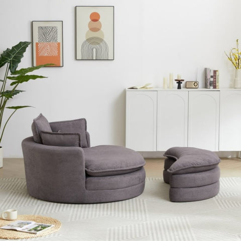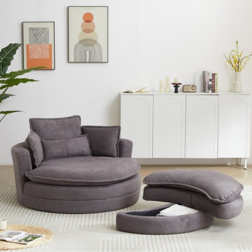 52' Swivel Accent Barrel Modern Grey Sofa Lounge Club Big Round Chair with Storage Ottoman chenille W834P150046