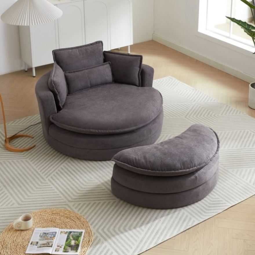 ✔Modern swivel chair: Upholstered modern sofa chair design made of soft fabric, single chair can rotate.
