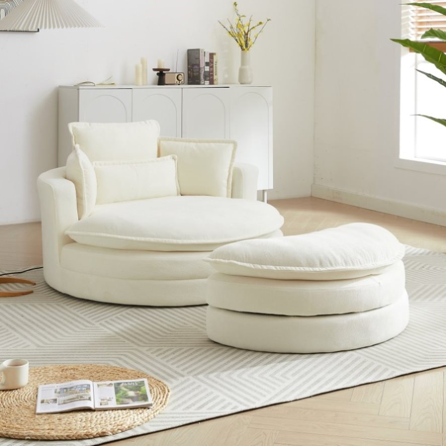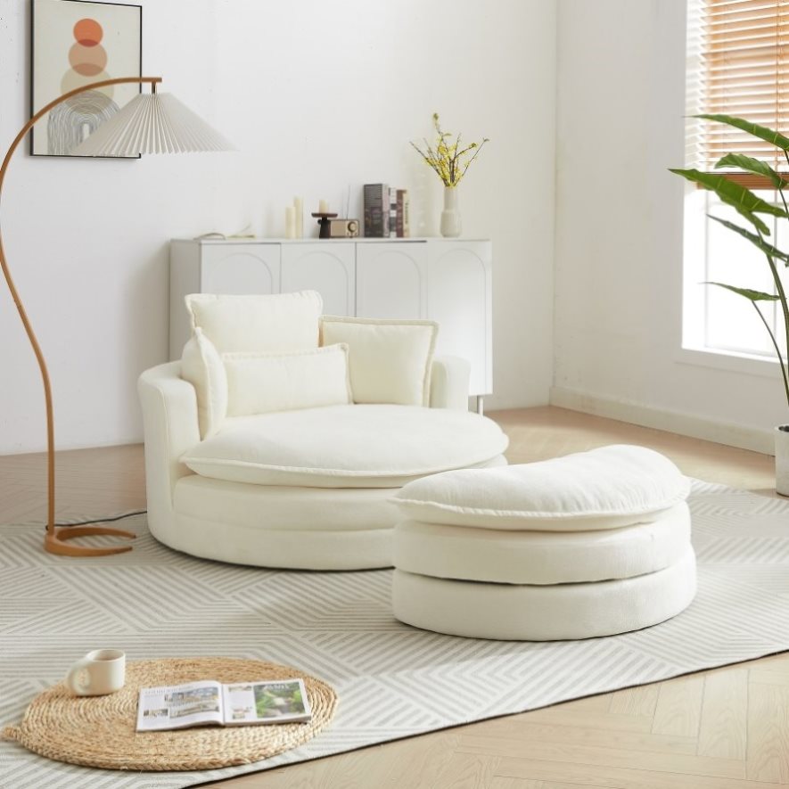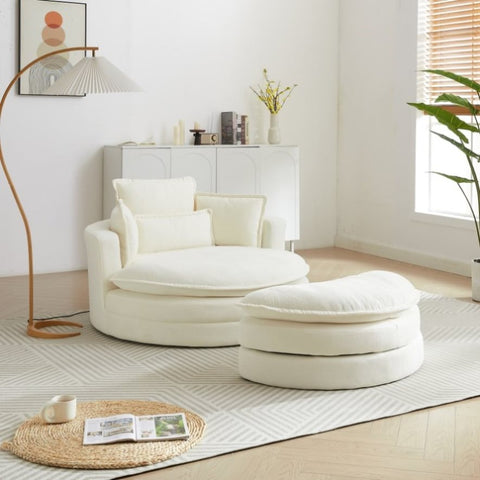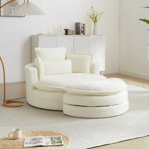 52'Swivel Accent Barrel Modern Beige Sofa Lounge Club Big Round Chair with Storage Ottoman chenille W834P150047
