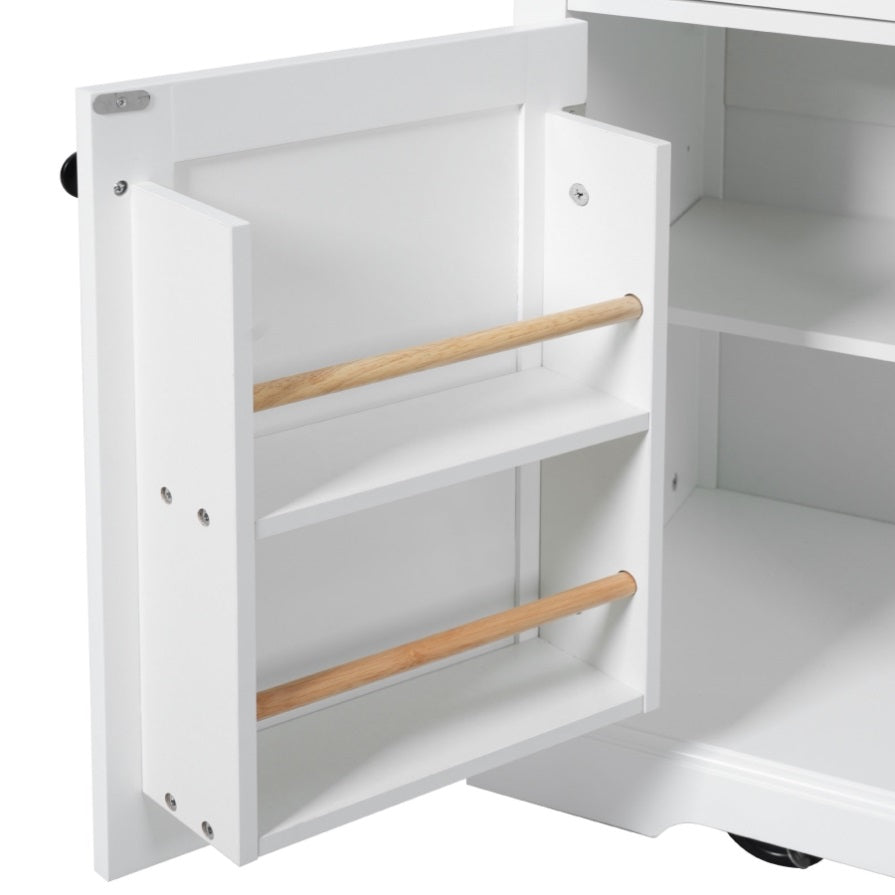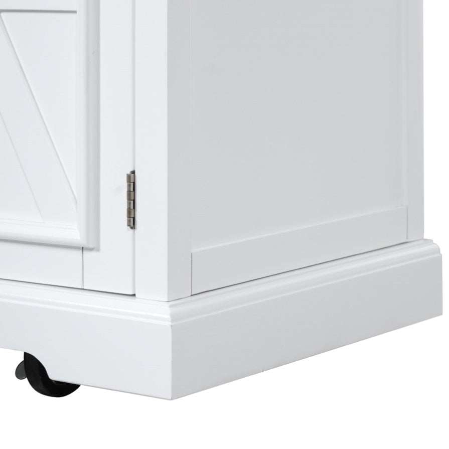 [Internal Storage Racks] Our rolling kitchen island is designed with an internal storage rack inspired by the functionality of refrigerator doors. The two barn doors all feature 2-tier shelf racks, providing easy access to soy sauce, barbecue sauce, and other condiments, and sticks can keep things from falling.