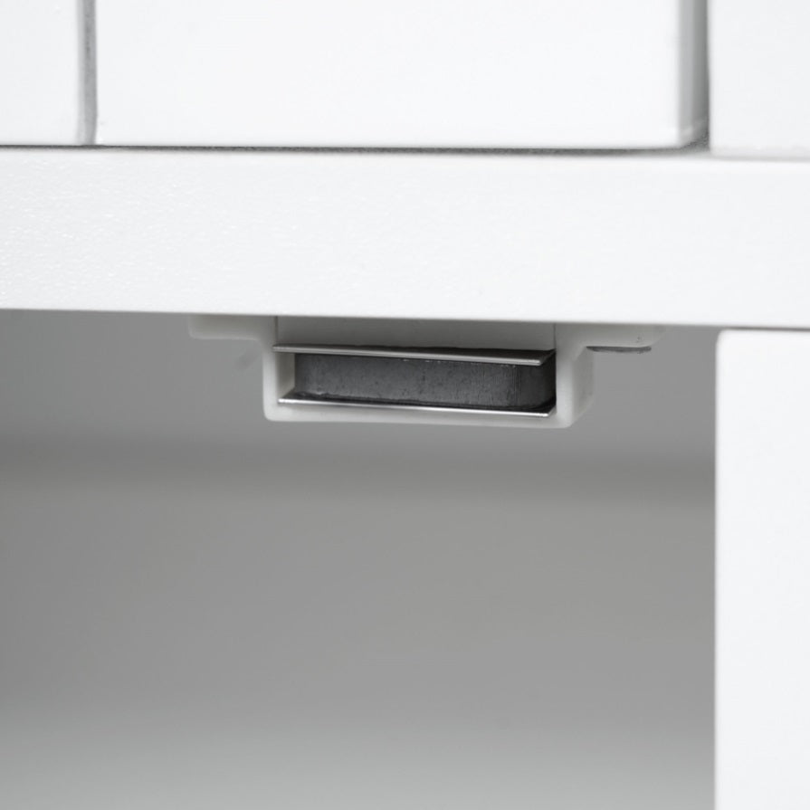 Height-adjustable shelves inside the cabinet doors provide flexibility in accommodating various kitchen items of different sizes.