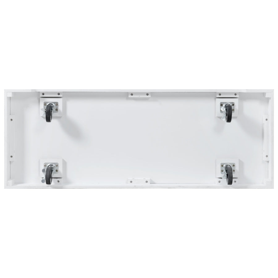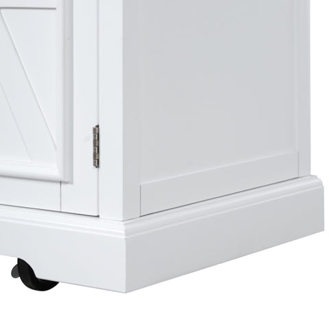 [Moveable & Stationary kitchen island] This mobile kitchen island features four concealed, lockable wheels at the base. Unlike other products that prioritize aesthetics over functionality, this design allows users to easily access and adjust the wheel positions to secure them effectively. For those who do not require mobility, there is an option to forgo the installation of wheels; the cabinet's robust base provides ample support for up to 300 lbs without compromising stability.