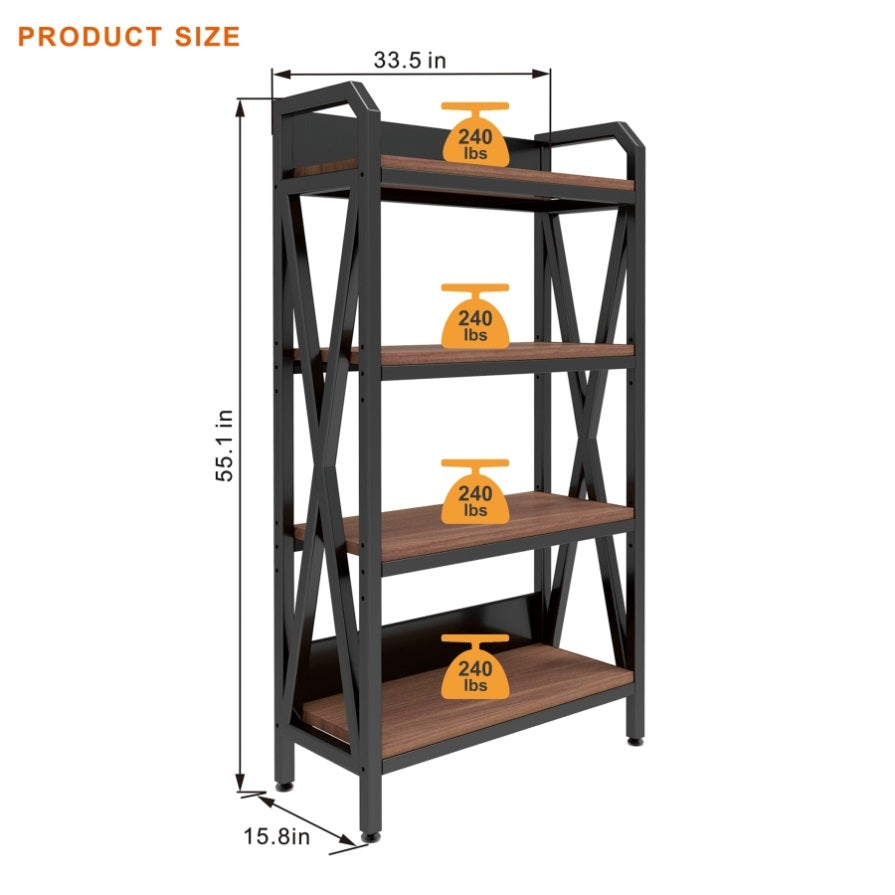 55'' Bakers Rack 4-Level Storage Shelves Metal and Wooden Kitchen Shelves, Kitchen Organizers and W3387P312343