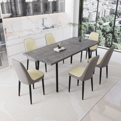 55.12-70.87" expandable rectangular dining table that can accommodate 4-6 people, equipped with 6 PU 95566565