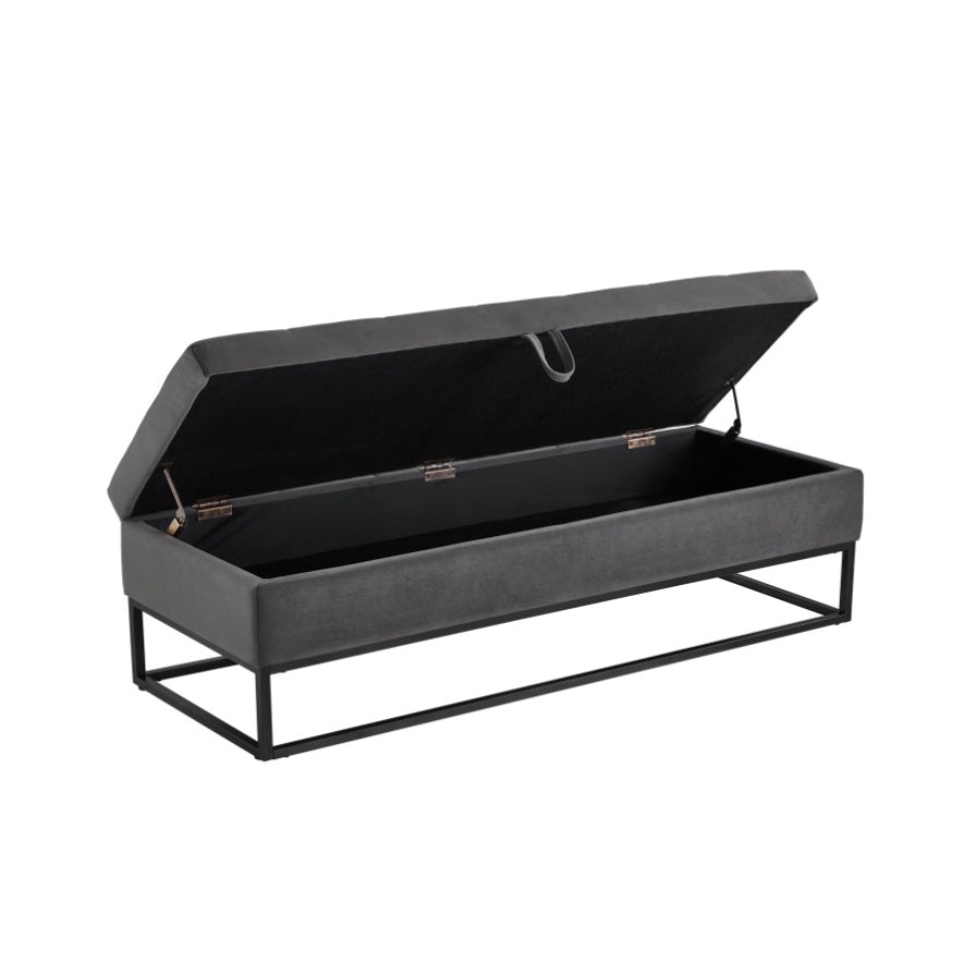 58.6" Bed Bench Metal Base with Storage Grey Velvet W1097119559