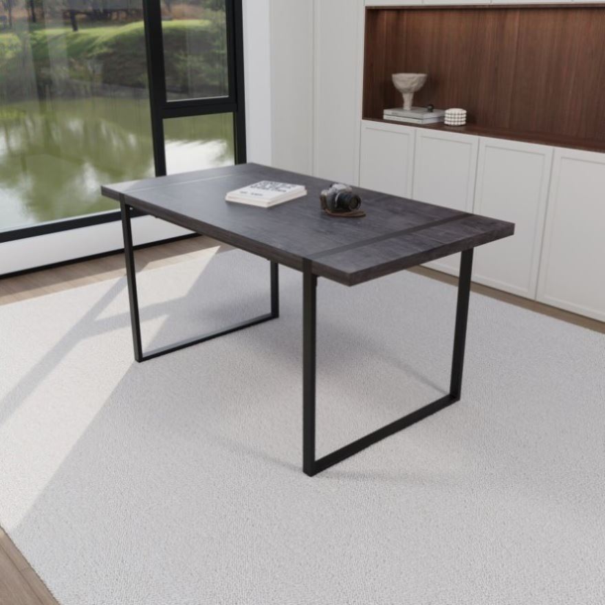 59 " dining table modern industrial rectangular MDF black , 4-6 people, 1.5" thick engineering wood 28112889