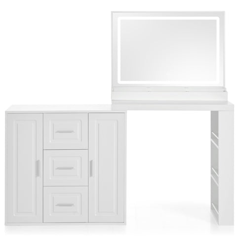 59" Makeup Vanity Desk with Mirror, Vanity Mirror with Lights, Dressing Table with 3 Drawers and 2 N704P263504K