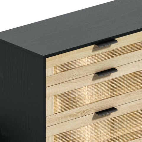 Modern natural rattan:The rattan dresser adopts simple balck color and natural rattan drawer design, providing you with a simple and spacious sorting and storage solution.