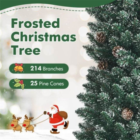● Slim Design for Space Saving: Standing at 5 ft, this artificial Christmas tree with 214 branch tips creates a slim yet lush shape. In this way, the Xmas tree with snowy design perfectly matches with limited corners, making home full of wintery vibe and festival atmosphere.