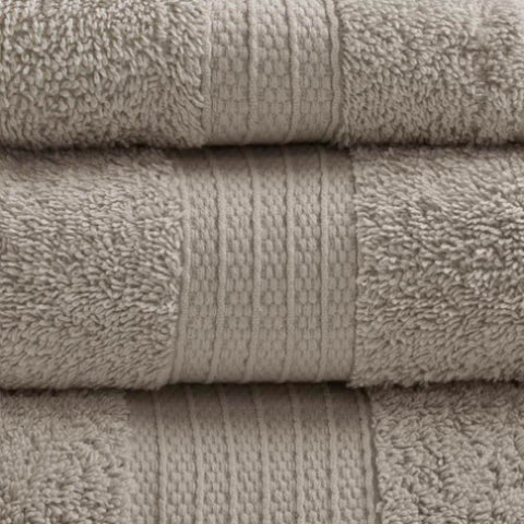 The Madison Park Organic 6 Piece Organic Cotton Towel Set brings an all-natural, fresh touch to your bathroom decor. These 650gsm towels feature long staple GOTS certified organic yarns that are exceptionally soft and absorbent, while the low twist construction provides more air and space between fibers to dry faster for maximum use and comfort throughout the day. Machine washable for easy care, each towel is also OEKO-TEX certified, meaning it does not contain any harmful substances or chemicals, ensuring quality comfort and wellness. Set includes: 2 oversized 30x54" bath towels, 2 standard 18x30" hand towels, and 2 standard 13x13" wash towels.