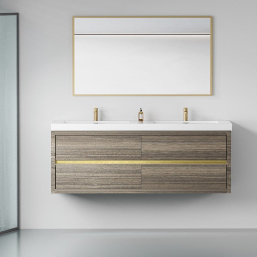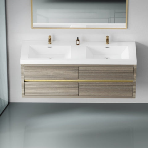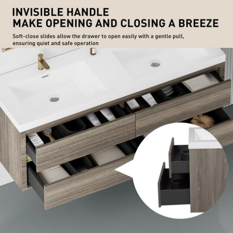 60" Wall-Mounted Bathroom Vanity with Double Sinks, Floating Bathroom Storage Cabinet with Stone W1573P211188