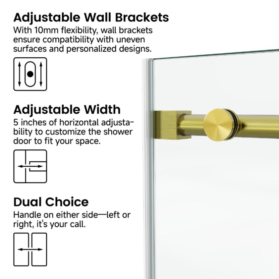 Tempered Glass: Crafted with 3/8" (10mm) thick SGCC certified clear tempered glass, our glass shower door is tough and durable with resistance to impact and scratch, reducing the risk of injury from sudden breakage.
