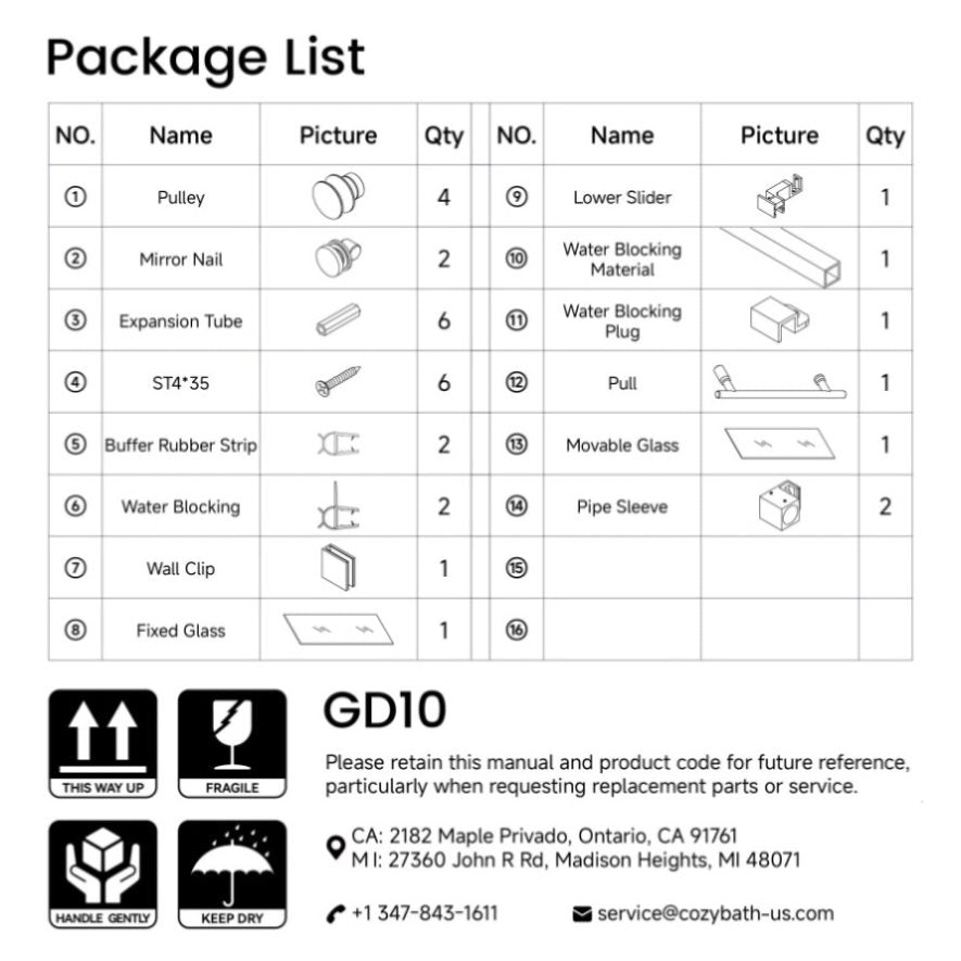 Everlasting Hardware: All the frames, handle, hinges are made of 304 stainless steel, resistant to rust and discoloration even in humid conditions. The shower door seal guard against water leakage, keeping your bathroom dry.