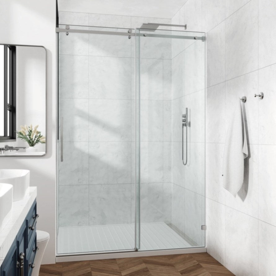 60*76" Fixed & Sliding Shower Door, Square Tube Hardware, Clear Glass Shower Door, 3/8 SGCC 14766289