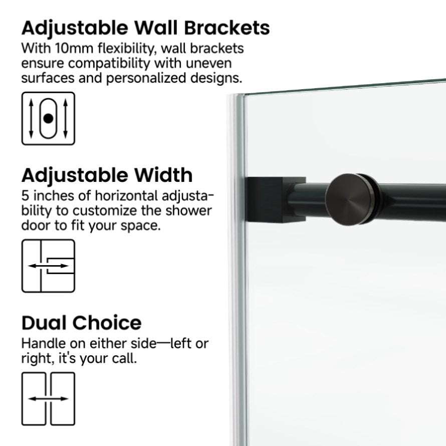 Tempered Glass: Crafted with 3/8" (10mm) thick SGCC certified clear tempered glass, our glass shower door is tough and durable with resistance to impact and scratch, reducing the risk of injury from sudden breakage.