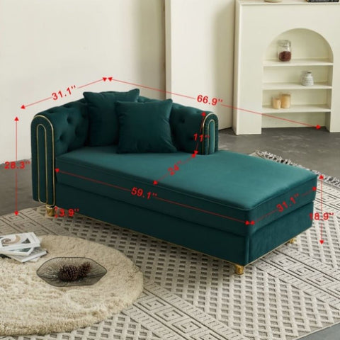 66.9''W Velvet Chaise Lounge,Luxury Modern Chaise Furniture,Tufted Back with 2pcs toss pillows for W579P224636