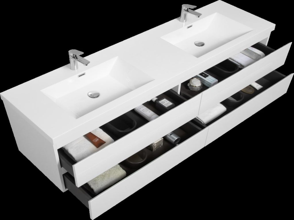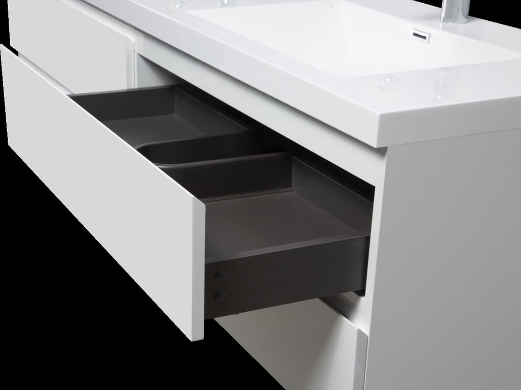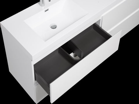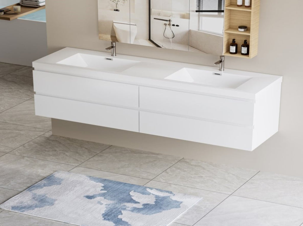 Clean and Functional: Enhance your bathroom with this space-saving, wall-mounted vanity to neatly organize cosmetics and other essentials. Its modern, minimalist design enhances the aesthetics of your space while maximizing functionality.