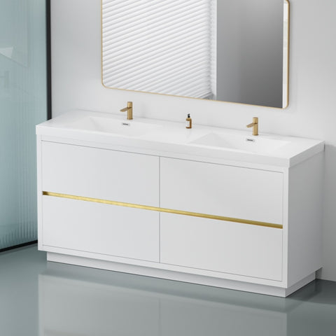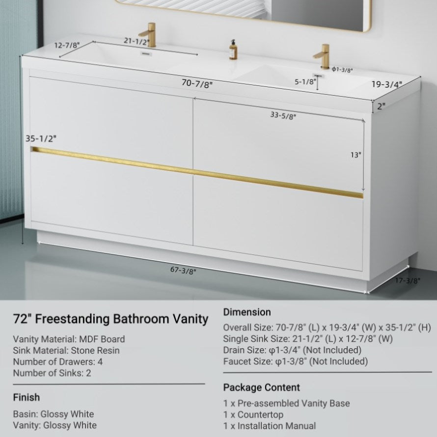 72" Freestanding Bathroom Vanity with Sink, Bathroom Storage Vanity Cabinet with Stone Resin W1573P211198