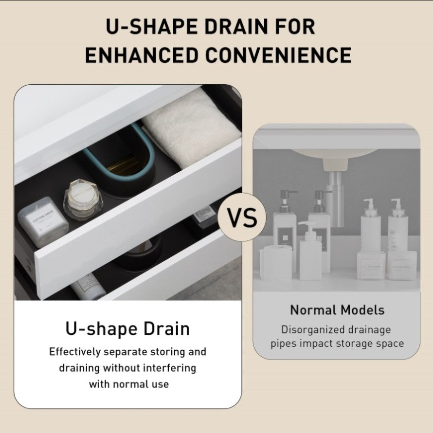Ample Storage Space: Designed with a U-shaped spacious interior, it neatly organizes your cosmetics and bathroom essentials, maximizing your storage options.