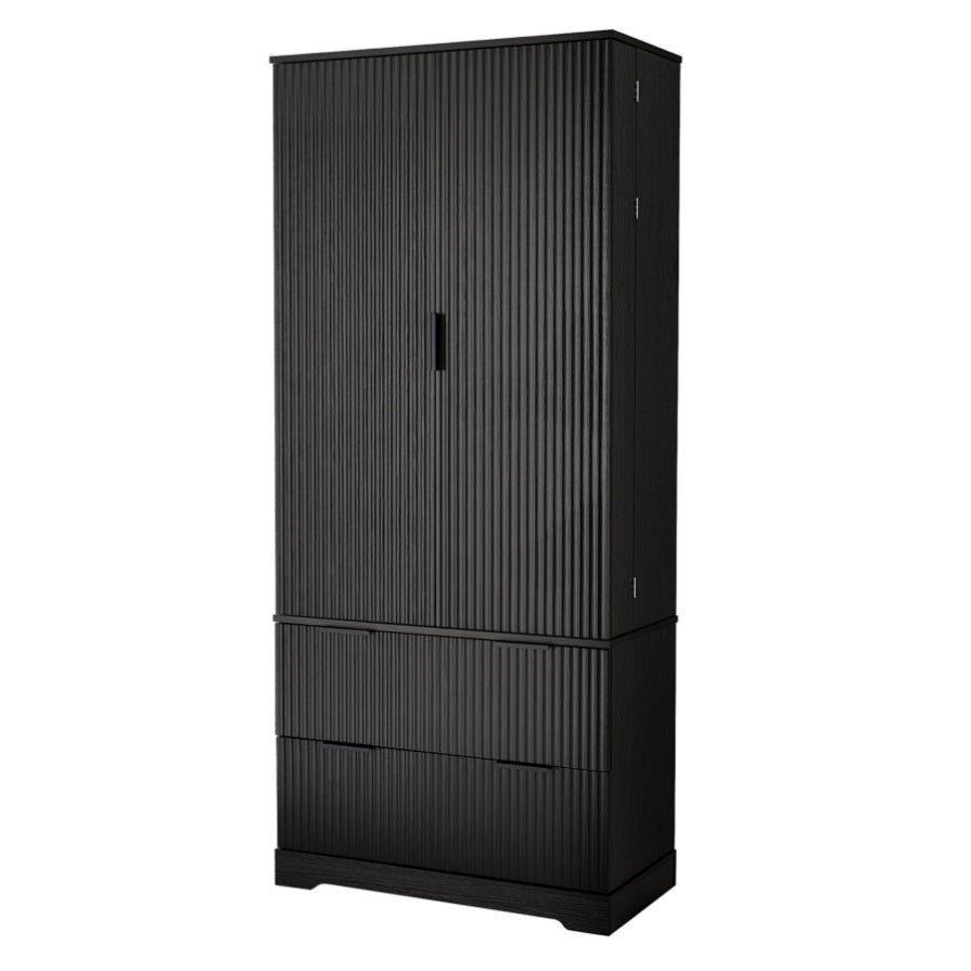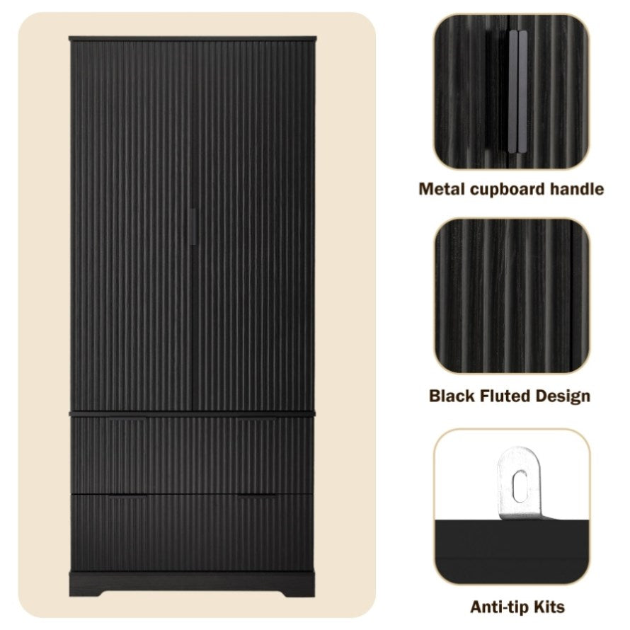 Unique Stripe Design:Vertical stripes on the cabinet add visual depth, lengthen the visual proportions, enhance the soft feel, and adapt to a variety of home styles. Metal handles make it more refined, smooth, durable and easy to maintain. Wooden pantry cabinet exquisite craftsmanship and classic shape will easily elevate any space.