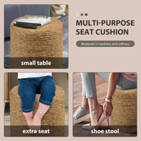 75805950)Ottoman Poof, Natural Seagrass Poufs, Hand Weave Round Footstool, Pouffe Accent 42242531