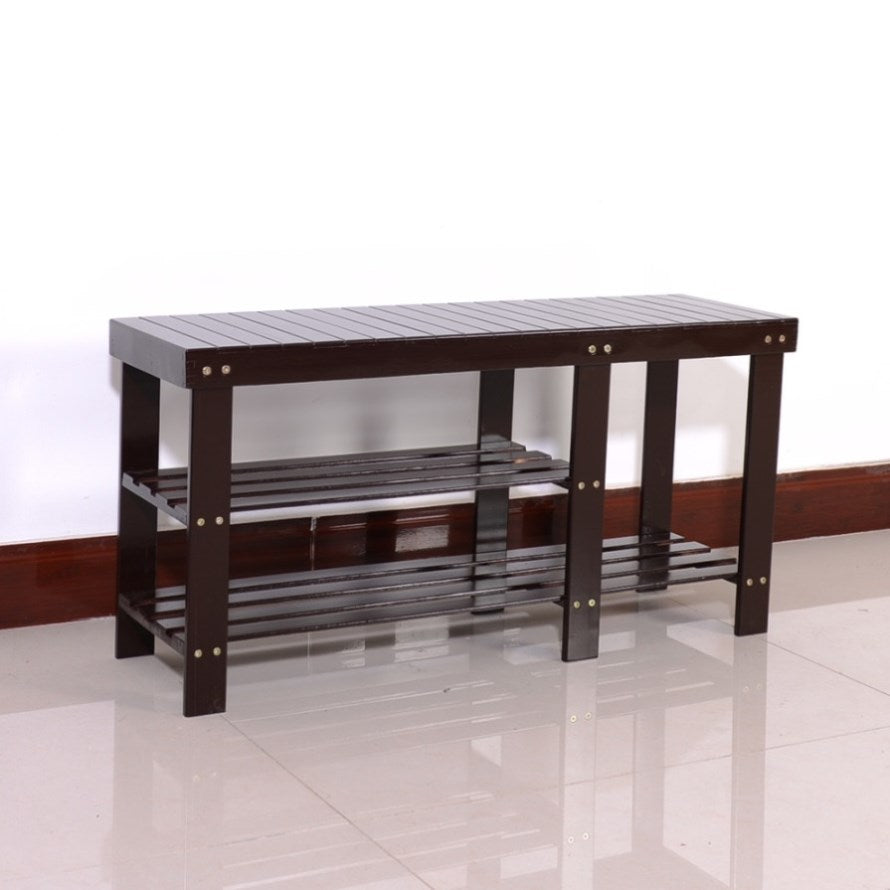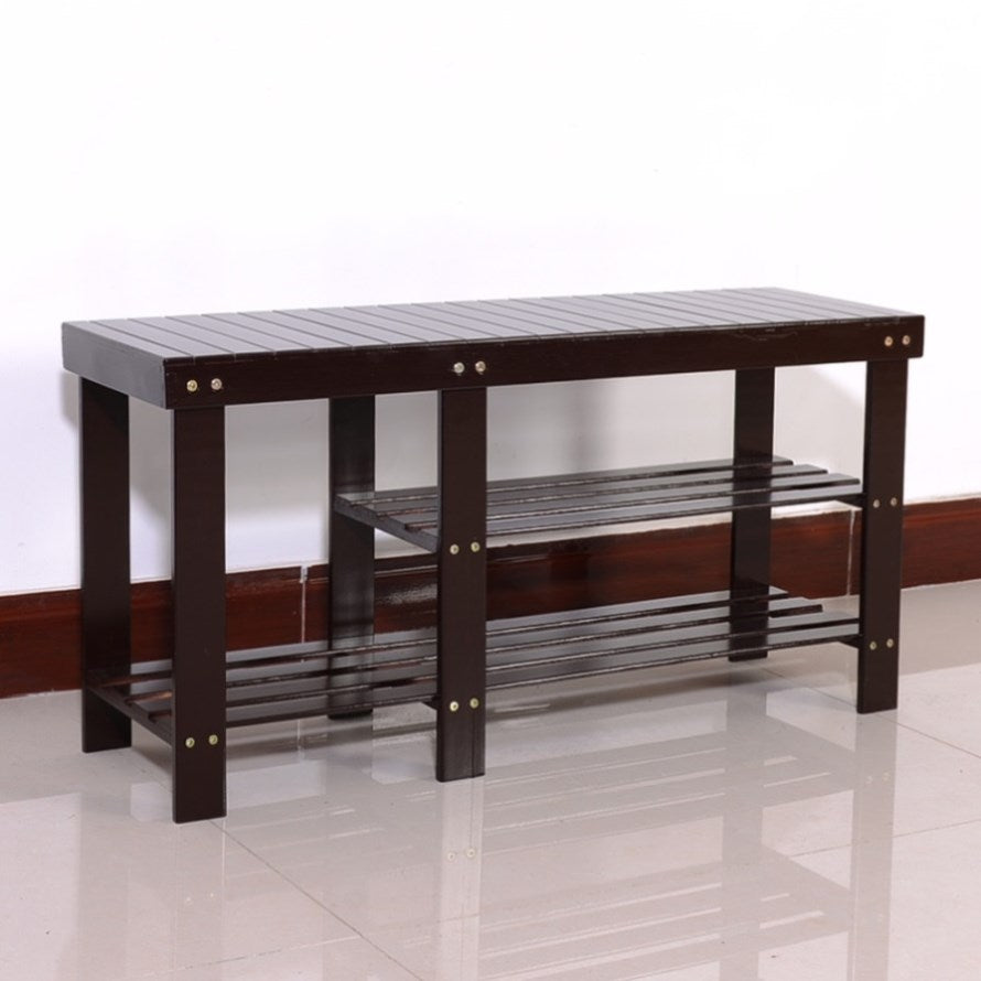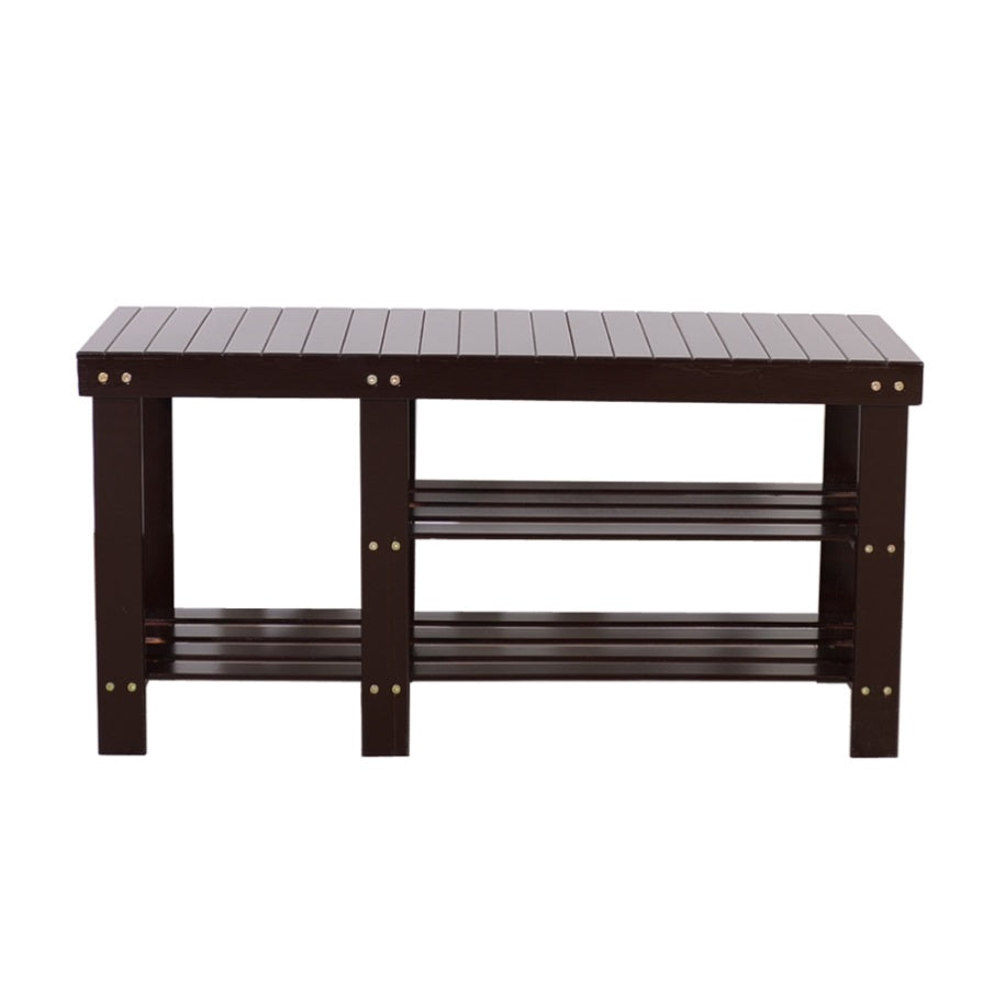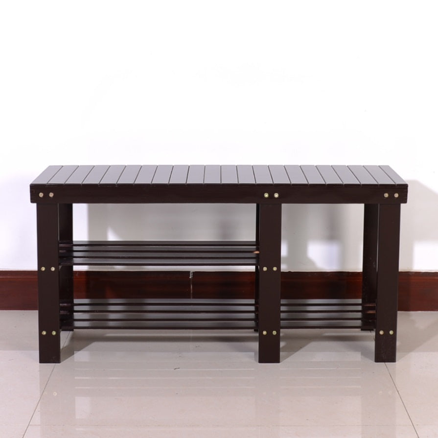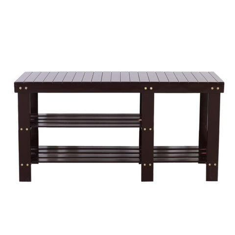 90cm Strip Type Bamboo Stool Shoe Rack with Boots Compartment Coffee 83390243
