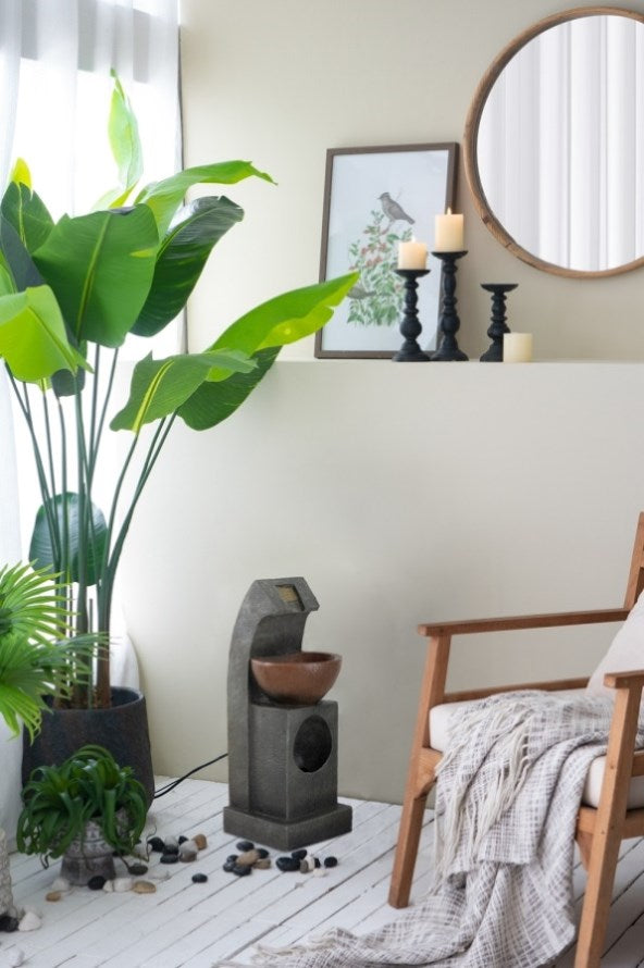 Masterfully crafted from durable, weather-resistant polyresin, this decorative fountain will introduce a touch of sculptural allure and tranquility to your home or garden. With its earthy brown and black colorway and smooth bowl basin, it is sure to catch the eye of your guests whether it is displayed alone or as part of an organic-themed ensemble.