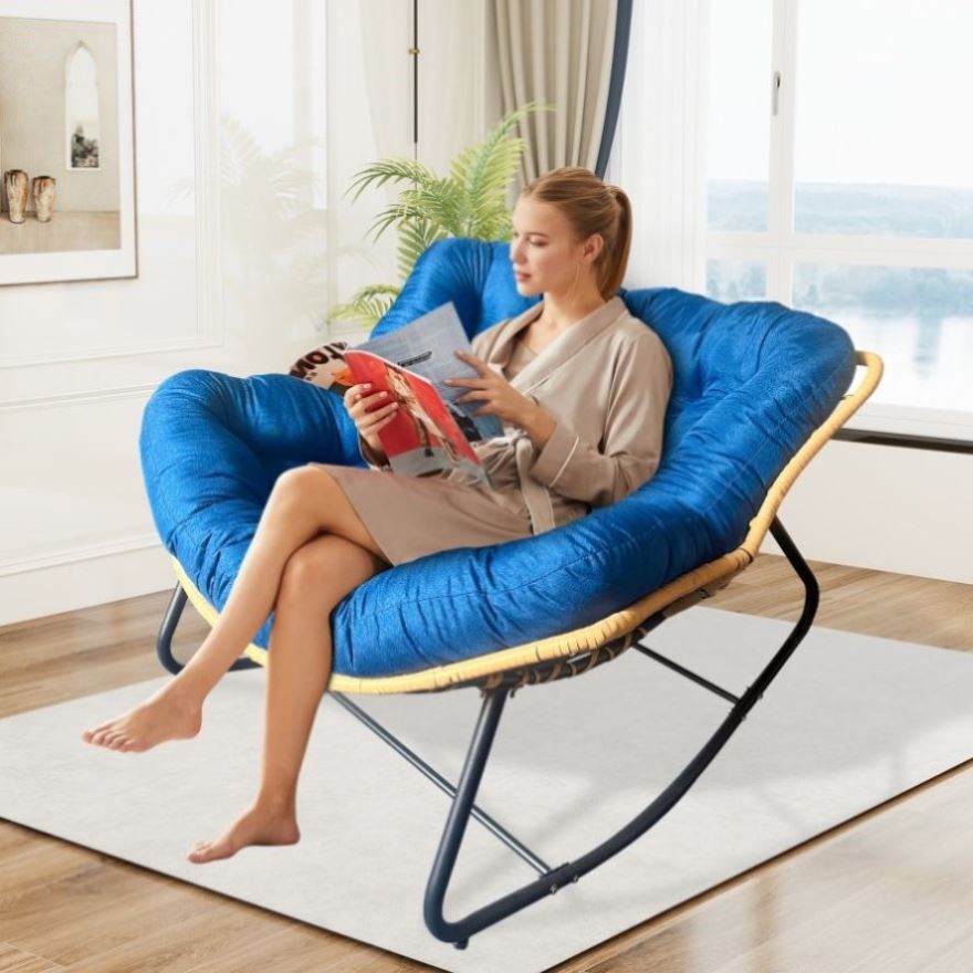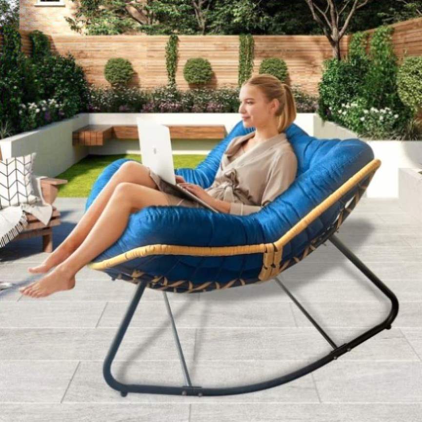 Let you relax,A terrace egg chair is a relaxing piece of furniture that can help relieve stress and anxiety. The rocking motion of the rocking chair can relieve tension and fatigue in the body, make you feel comfortable and relaxed, help reduce anxiety and help you sleep.