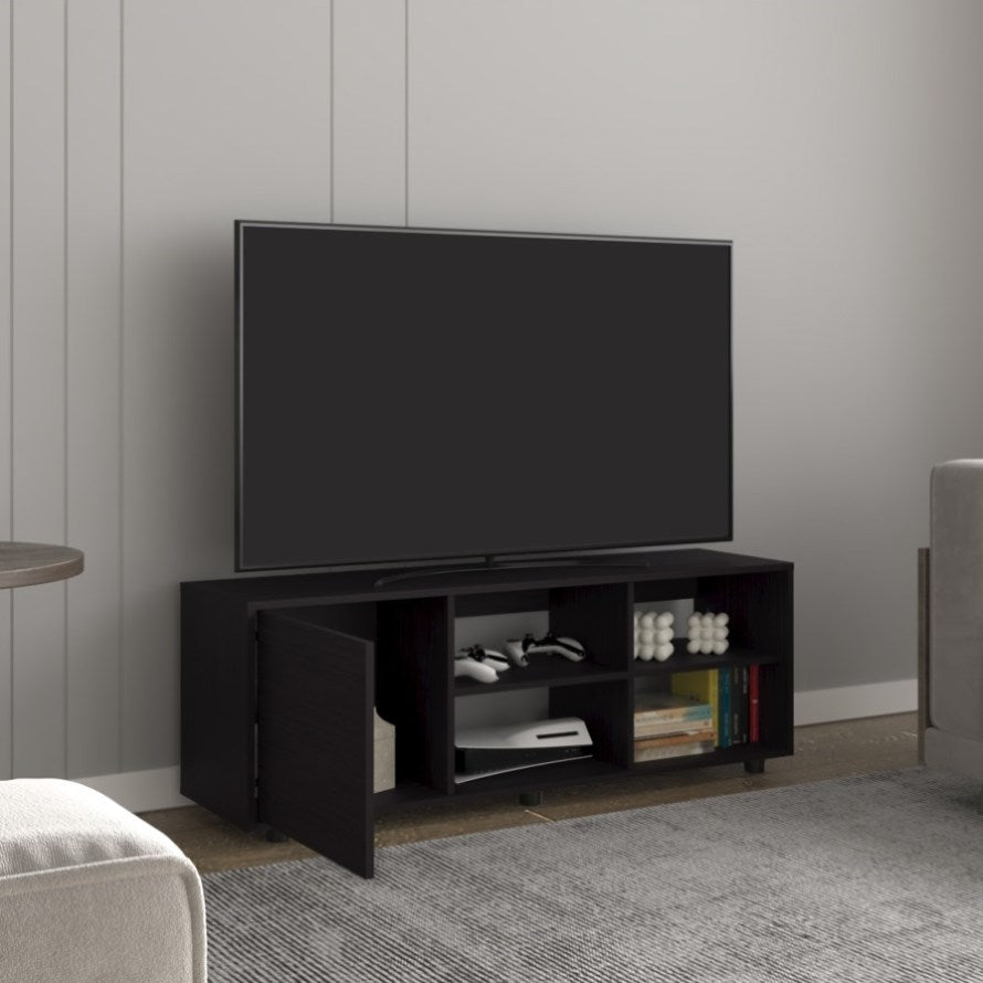 Adel 51" Wide Tv Stand with One Door Cabinet , Four Open Shelves, Cable Management, Living, Tv B200P286983