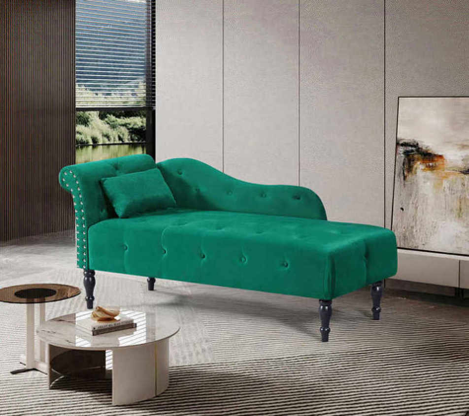 ELEGANT & RETRO STYLE: The chaise lounge chair covered in plush-touch velvet fabric with a decorative tufted buttons design for decoration. Nailhead trimming and the solid wood legs make it looks elegant and classic feeling.The elegant and beautiful decor fits in any room in your home.