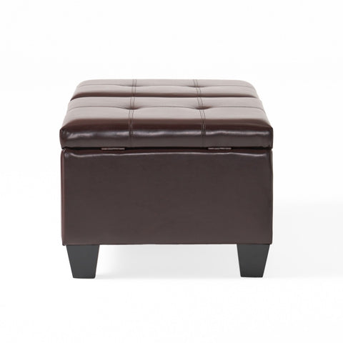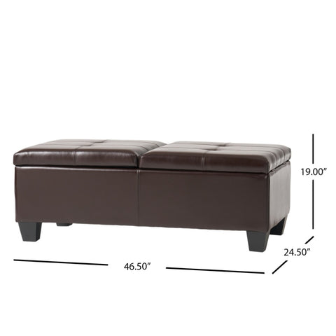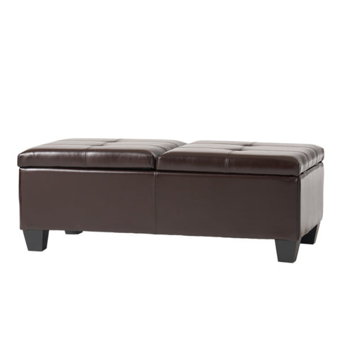 The storage ottoman is fully covered in beautifully soft leather. Gently tufted and with matching espresso legs, you will proudly display your ottoman in a prominent high-traffic area. It features a dual-opening tray top that is convenient for all of your blankets and throw pillows.