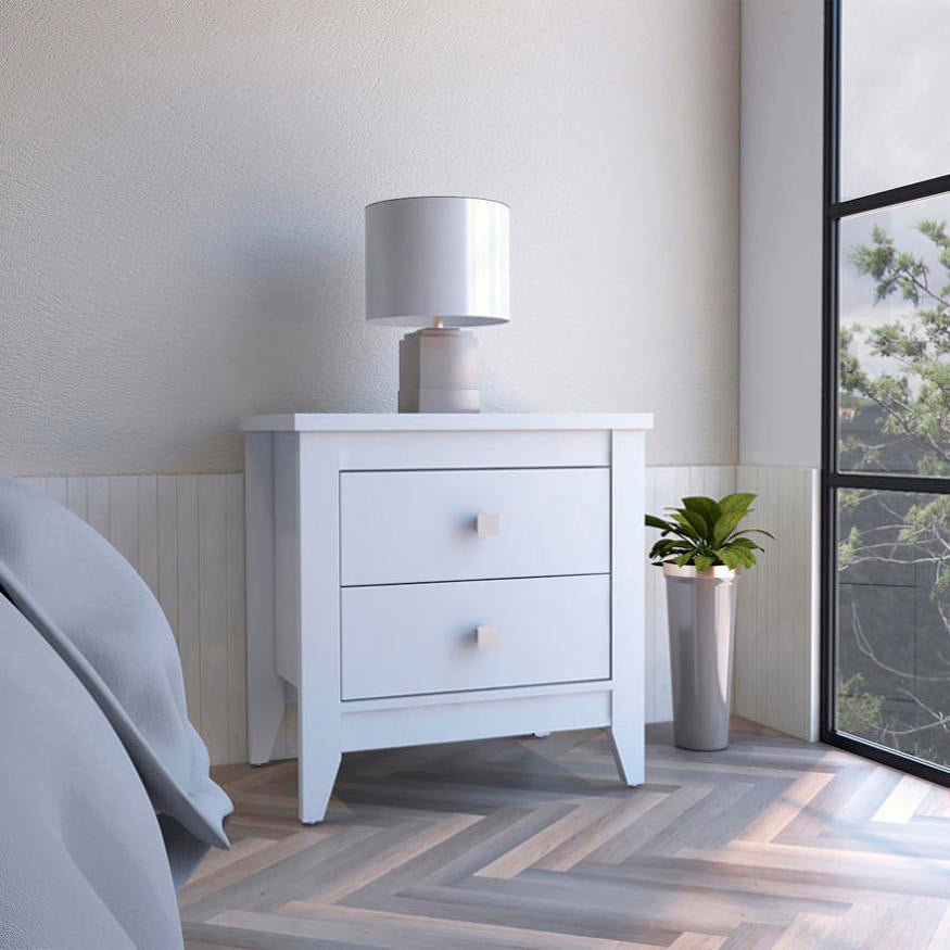 Amara Nightstand , End Table, Side Table Two Shelves, Four Legs -White B07091820