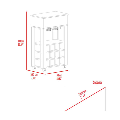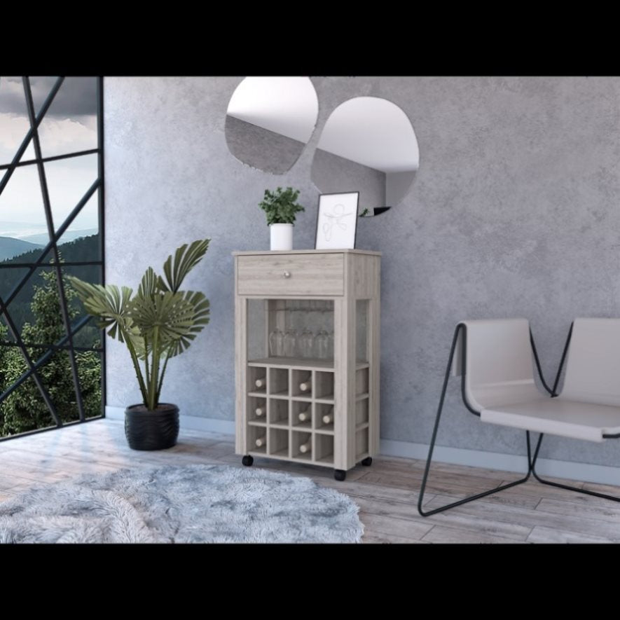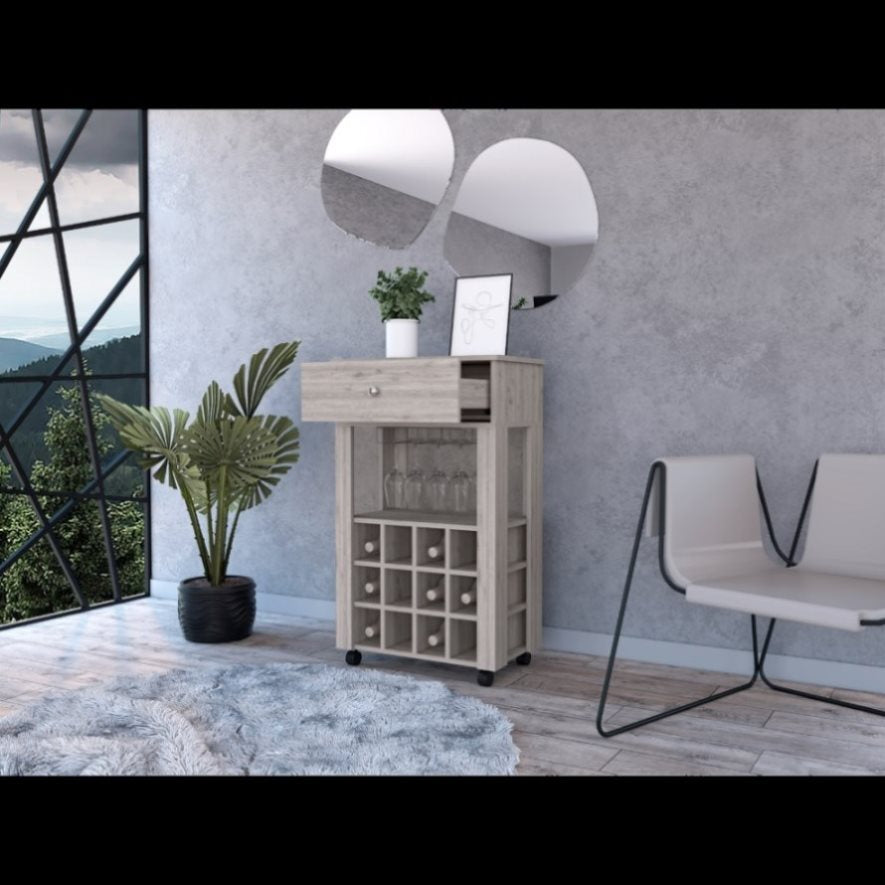 If you enjoy wine and want a contemporary setting in which to store your favorite bottles and glasses, this bar has both. It includes twelve compartments for keeping your wine organized and fresh, as well as the capacity to store your glasses, a huge drawer and caster for improved movement and adaptability.