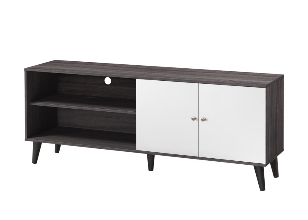 Functional Storage: Includes an open shelf for media devices and a two-door cabinet for concealed storage of miscellaneous items