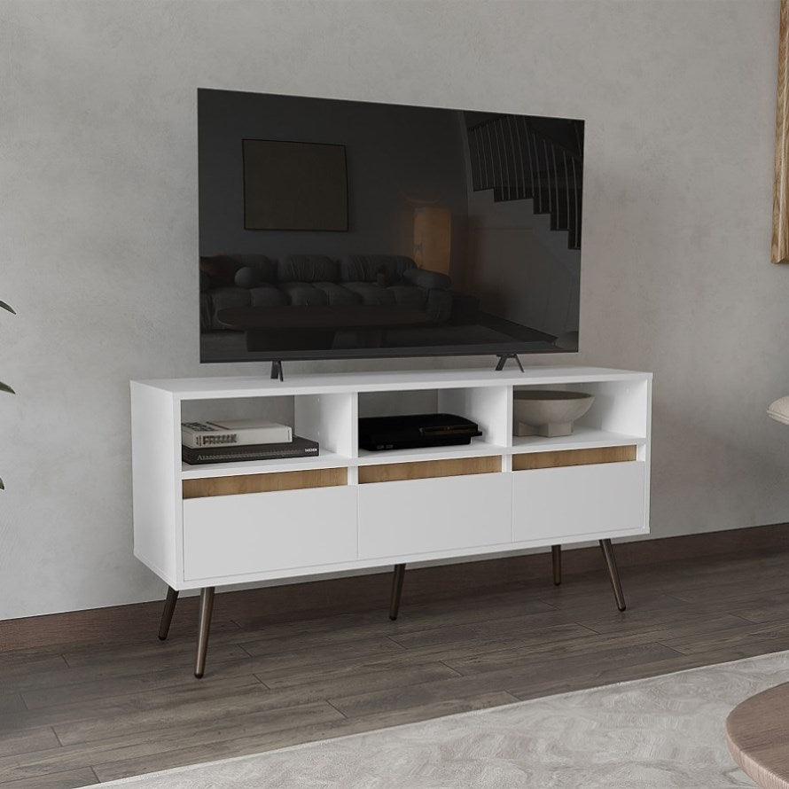 Aranjuez 47" Wide Tv Stand with Three Drawers, Three Open Shelves, Living Room, Tv Room White B070P254789