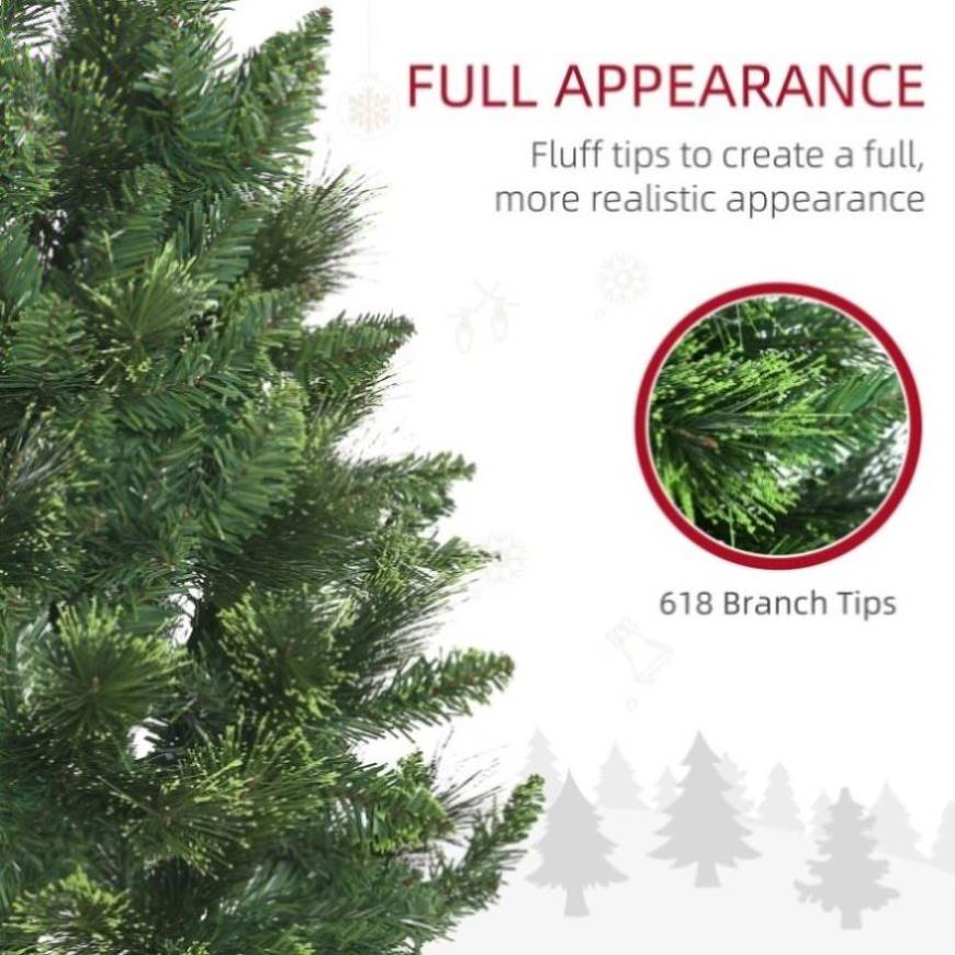 - 6ft tall in a real tree shape, with green powder covering the leaves and pine needles, providing a healthy, natural look