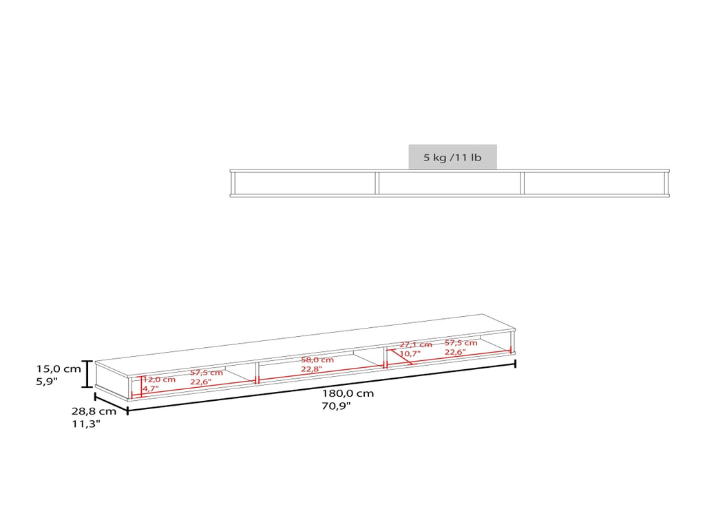 | Dimensions | 5.9 inches high x 70.9 inches wide x 11.3 inches deep |