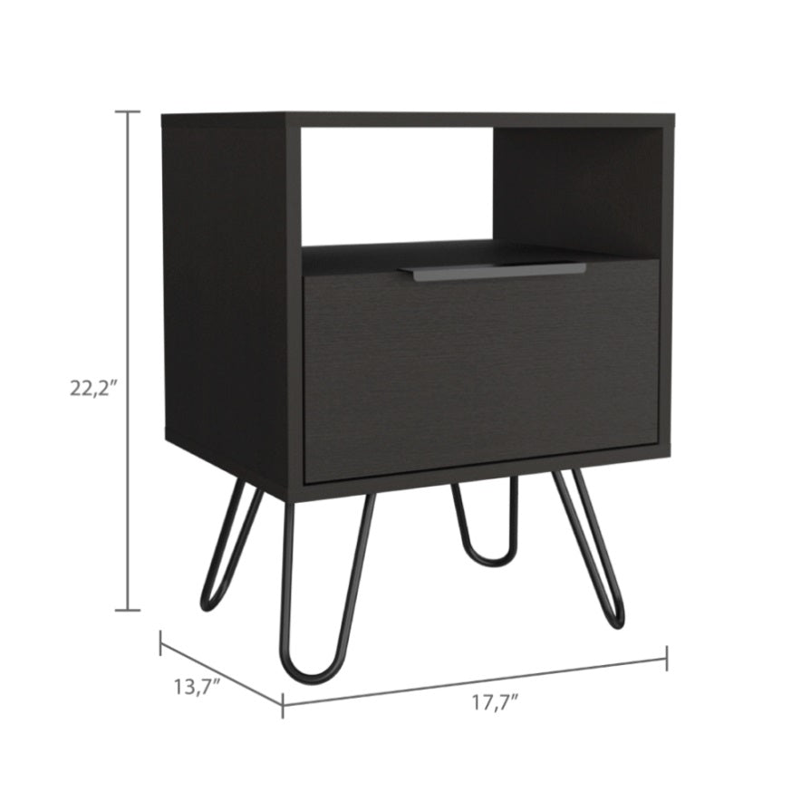 Augusta Nightstand , End Table, Side Table Single Door Cabinet, Hairpin Legs -Black B07092072