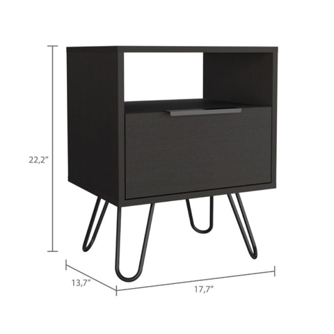 Augusta Nightstand , End Table, Side Table Single Door Cabinet, Hairpin Legs -Black B20092072
