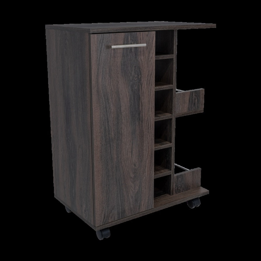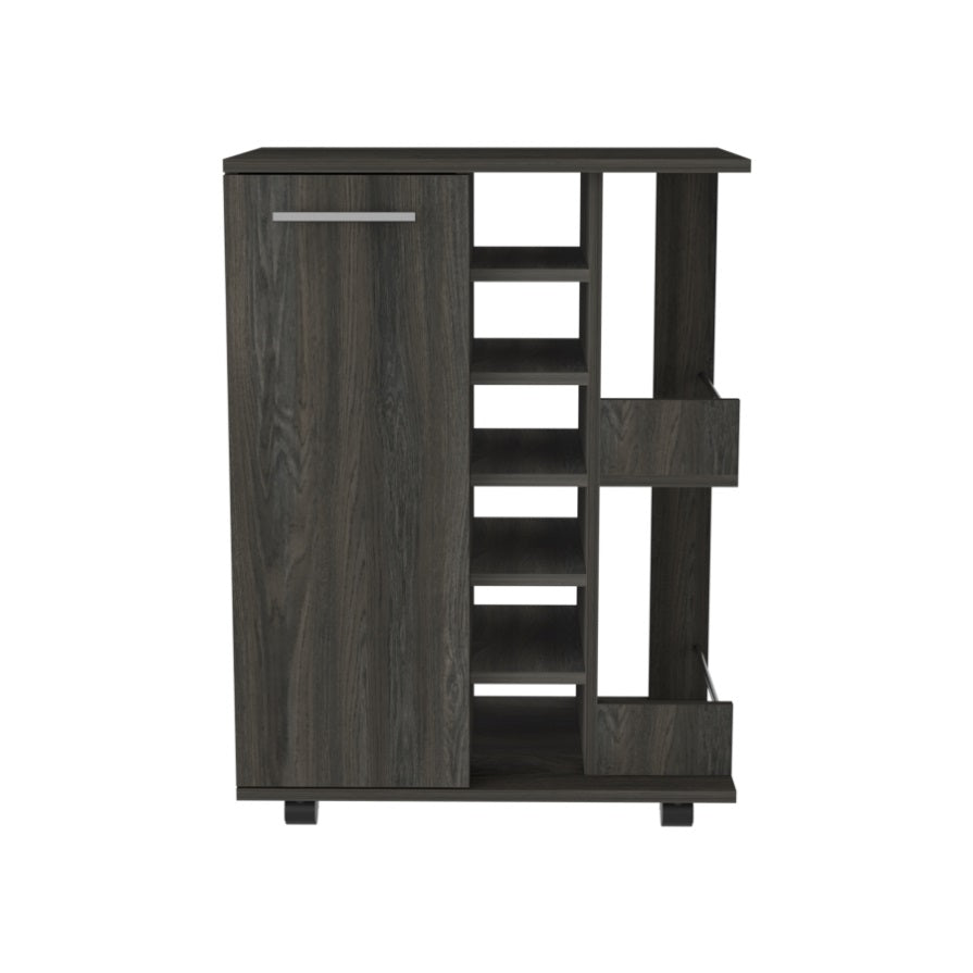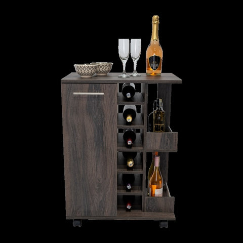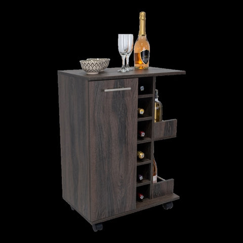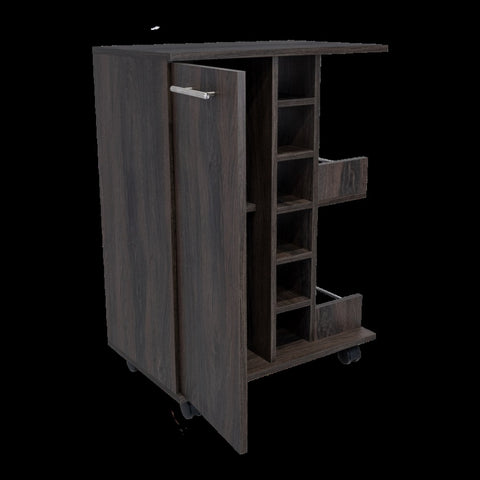 Bar Cart, Two External Shelves, Four Casters, Six Built-in Wine Rack, Single Door Cabinet -Espresso B20091825