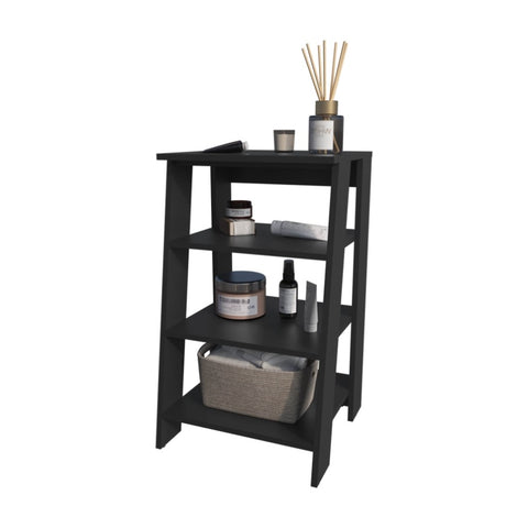 Bathbi 30" High 4-Tier Ladder Shelf Organizer for Bathroom, Side Table, Living room in Black B200P240251