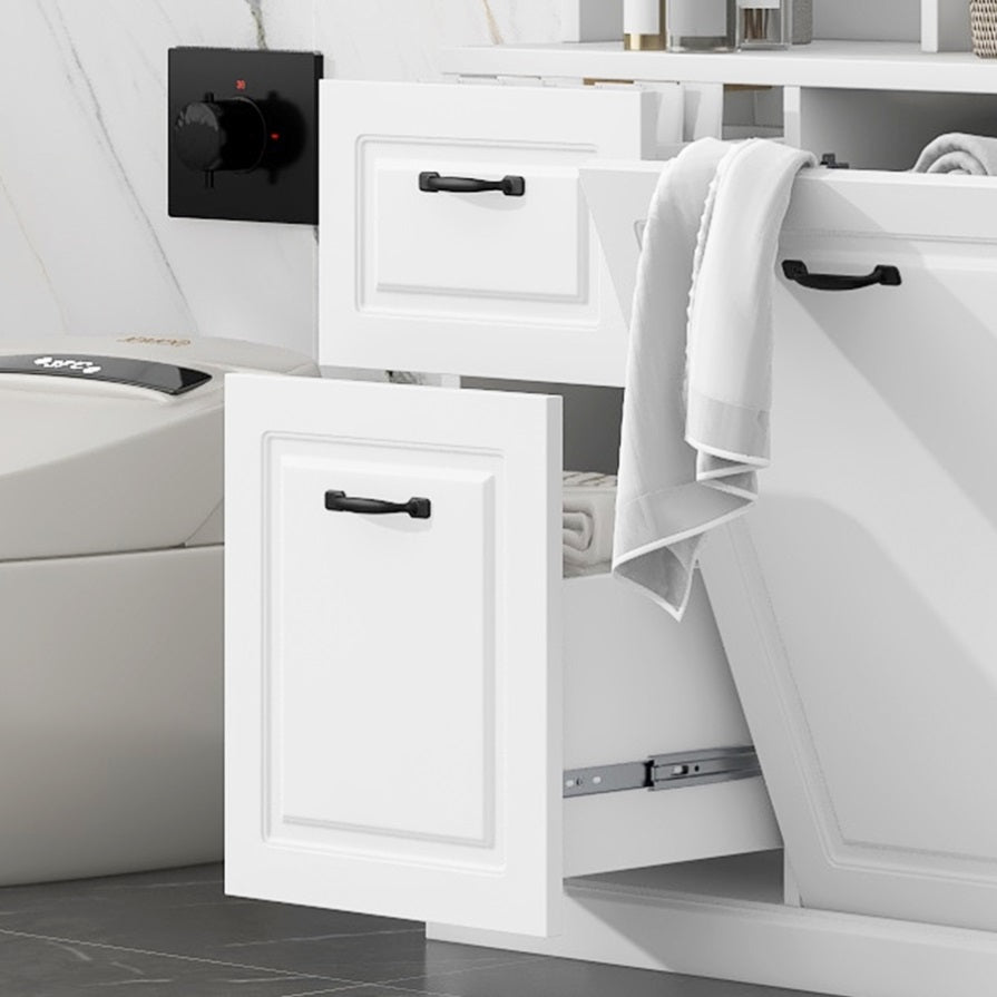 Convenient Pull-Out Drawers: Includes two drawers on metal glides for storing smaller bathroom essentials like toiletries, accessories, or tissues.