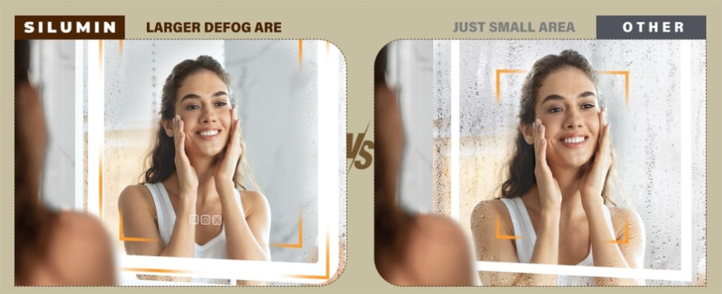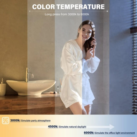 [Modern Smart Mirror]Turn on the defogging function before taking a shower, you will find that this mirror has a larger defogging area than other mirrors. Infinitely adjustable brightness and three color temperatures ensure that you can choose the color light that suits your needs. The memory function ensures that when you turn the mirror on again, the mirror is in the same state as the last time you used it.