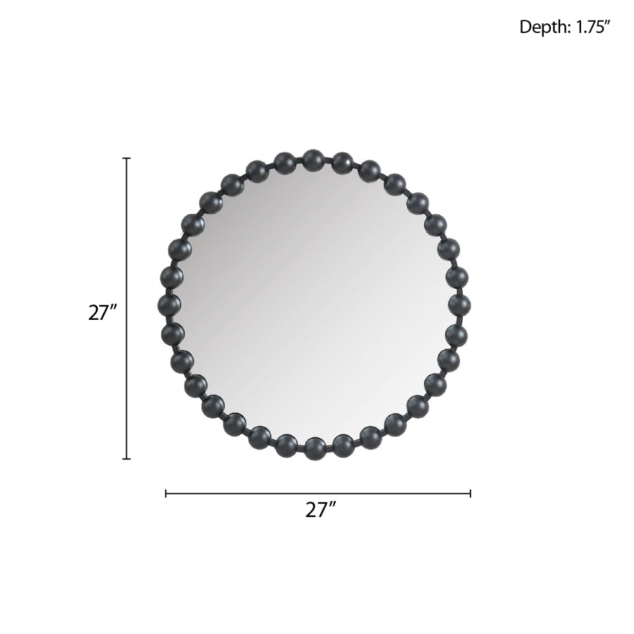 Reimagine your space with our Madison Park Signature Marlowe Beaded Round Wall Mirror. This round mirror features a stylized spherical iron frame finished with matte black foil, creating a bold and glamorous allure. The keyhole hook fixture on the back of the mirror allows for effortless hanging on your wall. Measuring 27x27" easily incorporate this mirror into any small space, bedroom, or entryway - for the perfect combination of modern glam and flair. Wipe clean with damp cloth and handle with care.