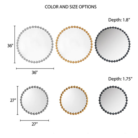 Single piece item, available in two sizes Dia 36" (mirror dia. 33.8") and Dia 27" (mirror dia. 24.3")